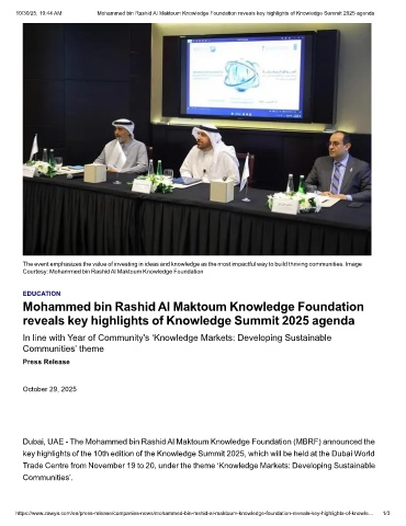 10/30/25, 10:44 AM Mohammed bin Rashid Al Maktoum Knowledge Foundation reveals key highlights of Knowledge Summit 2025 agenda