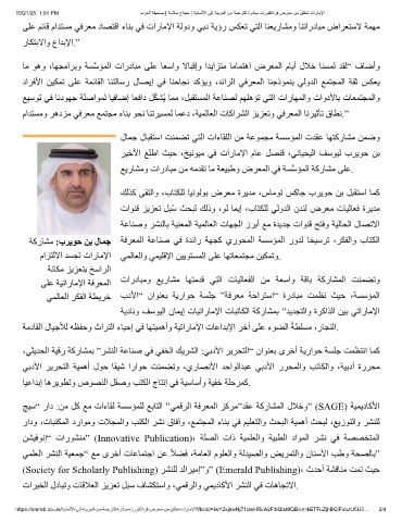 ﺔﻛرﺎﺸﻣ :بﺮﯾﻮﺣ ﻦﺑ لﺎﻤﺟ ﺔﻓﺮﻌﻤﻟا ﺔﻋﺎﻨﺻ ﻲﻓ ةﺪﺋار ﺔﮭﺠﻛ يرﻮﺤﻤﻟا ﺔﺴﺳﺆﻤﻟا روﺪﻟ ﺎﺨﯿﺳﺮﺗ ،ﺮﻜﻔﻟاو بﺎﺘﻜﻟا