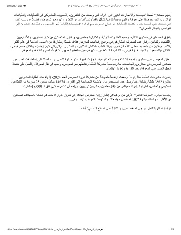 6/18/25, 10:20 AM                        34لا ﮫﺗرود ﻲﻓ رﺋاز فﻟأ 400 بطﻘﺗﺳﯾ بﺎﺗﻛﻠﻟ ﻲﻟودﻟا ﻲﺑظوﺑأ ضرﻌﻣ | ﺔﯾﻧﺎﻣﻌﻟا ﺔﯾؤرﻟا ﺔﻔﯾﺣﺻ