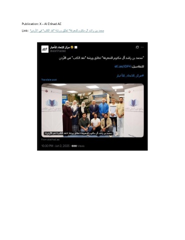 Publication: X – Al Etihad AE Link: " ندرلأا يف "بتكلا دقن" ةشرو قلطت "ةفرعملل موتكم لآ دشار نب دمحم
