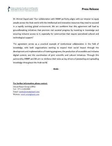 Dr. Ahmed Zayed said: “Our collaboration with MBRF perfectly aligns with our mission to equip