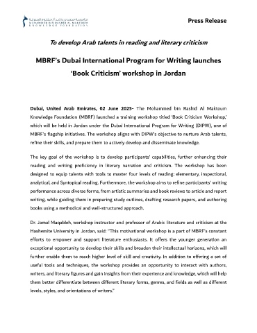 MBRF’s flagship initiatives. The workshop aligns with DIPW’s objective to nurture Arab talents,