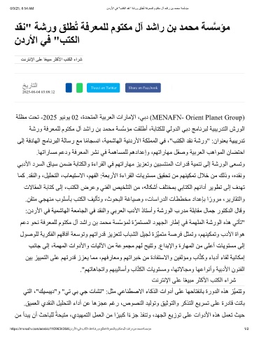 6/9/25, 8:54 AM ندرﻷا ﻲﻓ "بﺗﻛﻟا دﻘﻧ" ﺔﺷرو ﻖﻠطُﺗ ﺔﻓرﻌﻣﻠﻟ موﺗﻛﻣ لآ دﺷار نﺑ دﻣﺣﻣ ﺔﺳﱠﺳؤﻣ