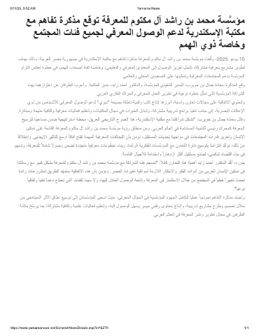 فدﮭﺑ كﻟذو ،ﺔﯾﺑرﻌﻟا رﺻﻣ ﺔﯾروﮭﻣﺟ ﻲﻓ ﺔﯾردﻧﻛﺳﻹا ﺔﺑﺗﻛﻣ ﻊﻣ مھﺎﻔﺗ ةرﻛذﻣ ﺔﻓرﻌﻣﻠﻟ موﺗﻛﻣ لآ دﺷار نﺑ دﻣﺣﻣ ﺔﺳﱠﺳؤﻣ تﻌ ﱠ ﻗو -2025 وﯾﻧوﯾ 10