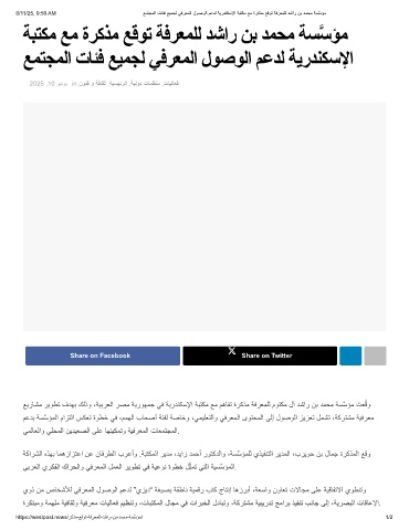 6/11/25, 9:50 AM ﻊﻣﺗﺟﻣﻟا تﺎﺋﻓ ﻊﯾﻣﺟﻟ ﻲﻓرﻌﻣﻟا لوﺻوﻟا مﻋدﻟ ﺔﯾردﻧﻛﺳﻹا ﺔﺑﺗﻛﻣ ﻊﻣ ةرﻛذﻣ ﻊﻗوﺗ ﺔﻓرﻌﻣﻠﻟ دﺷار نﺑ دﻣﺣﻣ ﺔﺳﱠﺳؤﻣ