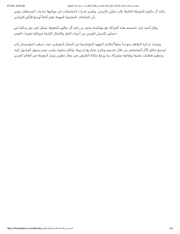 ﻲﻓ ﺎﻨﺘﻟﺎﺳر ﻊﻣ ﺮﻴﺒﻛ ﻞﻜﺸﺑ ﺔﻓﺮﻌﻤﻠﻟ مﻮﺘﻜﻣ لآ ﺪﺷار ﻦﺑ ﺪﻤﺤﻣ ﺔﺴﱠﺳﺆﻣ ﻊﻣ ﺔﻛارشﻟا هﺬﻫ ﻢﺠﺴﻨﺗ» :ﺪﻳاز ﺪﻤﺣأ لﺎﻗو