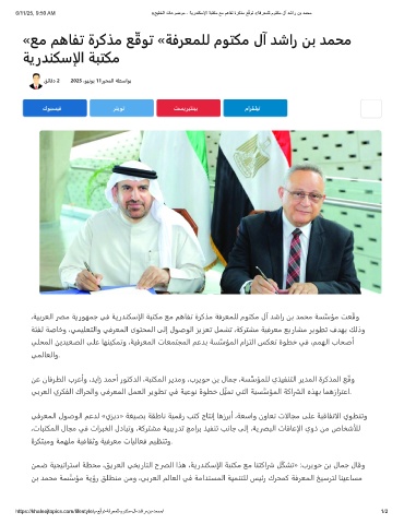 6/11/25, 9:50 AM «ﺞﯾﻠﺧﻟا تﺎﻋوﺿوﻣ - ﺔﯾردﻧﻛﺳﻹا ﺔﺑﺗﻛﻣ ﻊﻣ مھﺎﻔﺗ ةرﻛذﻣ ﻊ ّ ﻗوﺗ «ﺔﻓرﻌﻣﻠﻟ موﺗﻛﻣ لآ دﺷار نﺑ دﻣﺣﻣ