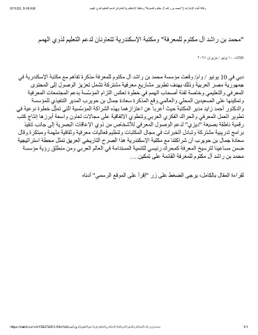 6/11/25, 9:49 AM مﻣﮭﻟا يوذﻟ مﯾﻠﻌﺗﻟا مﻋدﻟ نﺎﻧوﺎﻌﺗﺗ ﺔﯾردﻧﻛﺳﻹا ﺔﺑﺗﻛﻣو "ﺔﻓرﻌﻣﻠﻟ موﺗﻛﻣ لآ دﺷار نﺑ دﻣﺣﻣ" | تارﺎﻣﻹا ءﺎﺑﻧأ ﺔﻟﺎﻛو