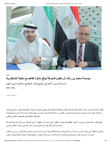 6/11/25, 9:49 AM ﺔﯾردﻧﻛﺳﻹا ﺔﺑﺗﻛﻣ ﻊﻣ مھﺎﻔﺗ ةرﻛذﻣ ﻊﻗوﺗ ﺔﻓرﻌﻣﻠﻟ موﺗﻛﻣ لآ دﺷار نﺑ دﻣﺣﻣ ﺔﺳﱠﺳؤﻣ