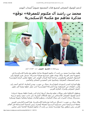 6/11/25, 9:49 AM «ﺔﯾردﻧﻛﺳﻹا ﺔﺑﺗﻛﻣ ﻊﻣ مھﺎﻔﺗ ةرﻛذﻣ ﻊ ّ ﻗوﺗ «ﺔﻓرﻌﻣﻠﻟ موﺗﻛﻣ لآ دﺷار نﺑ دﻣﺣﻣ