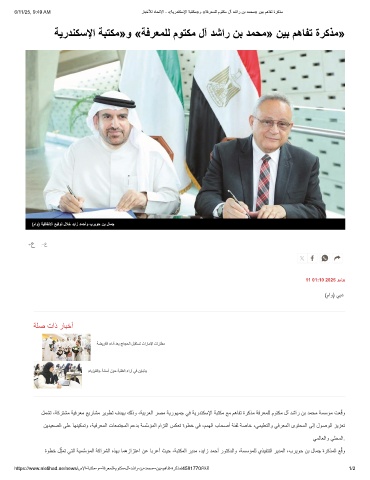 6/11/25, 9:49 AM رﺎﺑﺧﻸﻟ دﺎﺣﺗﻻا - «ﺔﯾردﻧﻛﺳﻹا ﺔﺑﺗﻛﻣ»و «ﺔﻓرﻌﻣﻠﻟ موﺗﻛﻣ لآ دﺷار نﺑ دﻣﺣﻣ» نﯾﺑ مھﺎﻔﺗ ةرﻛذﻣ