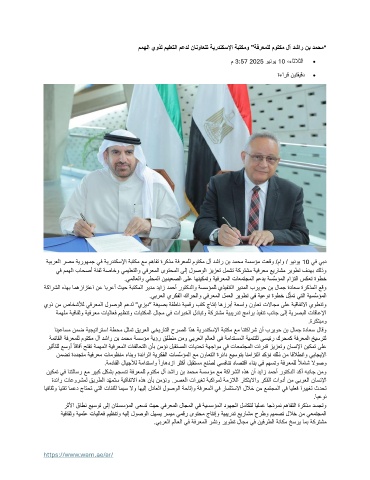 ةيبرعلا رصم ةيروهمج يف ةيردنكسلإا ةبتكم عم مهافت ةركذم ةفرعملل موتكم لآ دشار نب دمحم ةسسؤم تعقو /ماو / وينوي 10 يف يبد