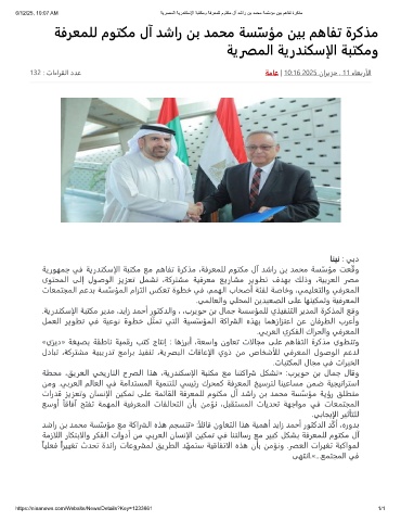 6/12/25, 10:07 AM ﺔﯾرﺻﻣﻟا ﺔﯾردﻧﻛﺳﻹا ﺔﺑﺗﻛﻣو ﺔﻓرﻌﻣﻠﻟ موﺗﻛﻣ لآ دﺷار نﺑ دﻣﺣﻣ ﺔﺳّﺳؤﻣ نﯾﺑ مھﺎﻔﺗ ةرﻛذﻣ
