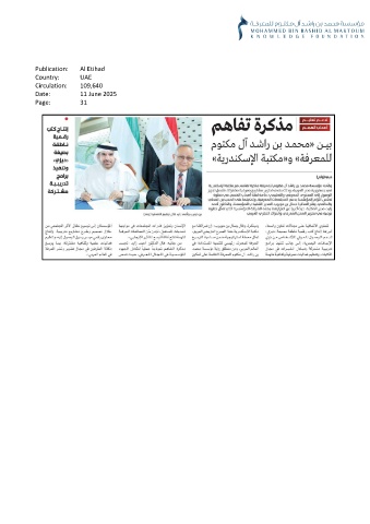 Publication: Al Etihad Country: UAE Circulation: 109,640 Date: 11 June 2025 Page: 31