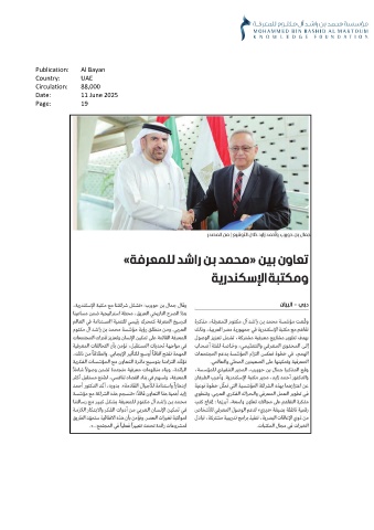 Publication: Al Bayan Country: UAE Circulation: 88,000 Date: 11 June 2025 Page: 19