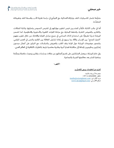 ةحّقنمو ةلمتكم ،ثوحبو ريراقتو تاساردو تلااقم نم مهلامعأ ميدقت ىلع نيكراشملا لمعيس ،ةشرولا ماتخ ي فو
