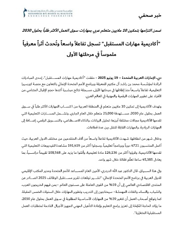 ً ا يفرعم ا رثأ ثدحتو ً ُ ا عساو ًلاعافت لجست "لبقتسملا تاراهم ةيميداك " أ