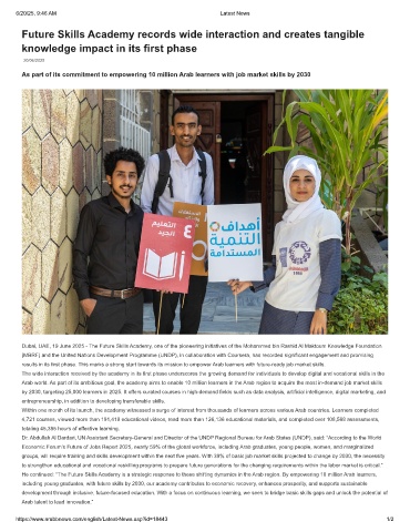 Dubai, UAE, 19 June 2025 - The Future Skills Academy, one of the pioneering initiatives of the Mohammed bin Rashid Al Maktoum Knowledge Foundation