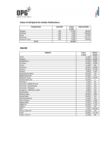 Value of Ad Spend for Arabic Publications
