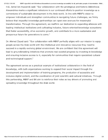 6/11/25, 9:38 AM MBRF signs MoU with Bibliotheca Alexandrina to promote knowledge accessibility for all, particularly people of determination - Midd…