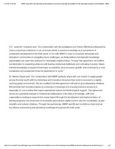 6/11/25, 9:38 AM MBRF signs MoU with Bibliotheca Alexandrina to promote knowledge accessibility for all, particularly people of determination - Midd…