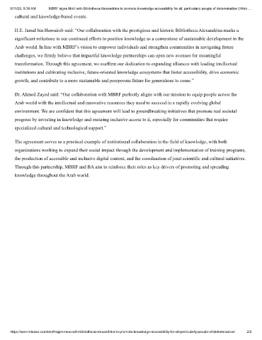 6/11/25, 9:38 AM MBRF signs MoU with Bibliotheca Alexandrina to promote knowledge accessibility for all, particularly people of determination | Web …