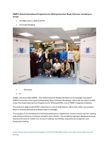 (MBRF) launched a training workshop titled ‘Book Criticism Workshop,’ which will be held in Jordan