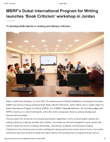 (MBRF) launched a training workshop titled ‘Book Criticism Workshop,’ which will be held in Jordan under the