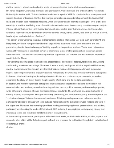 University in Jordan, said: “This motivational workshop is a part of MBRF’s constant efforts to empower and
