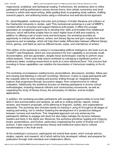 6/3/25, 10:49 AM MBRF's Dubai International Program For Writing Launches 'Book Criticism' Workshop In Jordan