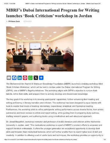 6/3/25, 10:49 AM MBRF’s Dubai International Program for Writing launches ‘Book Criticism’ workshop in Jordan - Middle East News 247