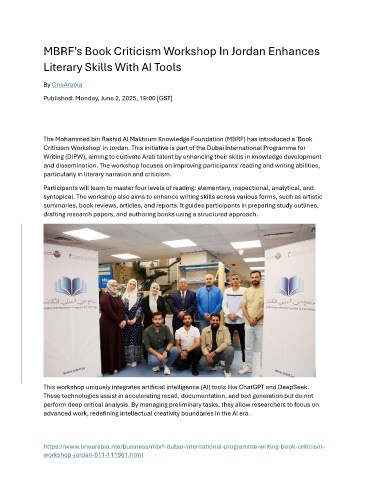 Criticism Workshop' in Jordan. This initiative is part of the Dubai International Programme for