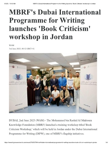 6/3/25, 10:50 AM MBRF's Dubai International Programme for Writing launches 'Book Criticism' workshop in Jordan