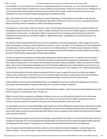 6/18/25, 10:15 AM Abu Dhabi International Book Fair welcomed 400,000 visitors in first 10-day edition