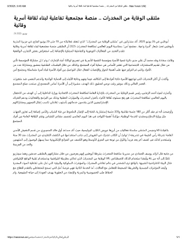 ﺔﻴﺋﺎﻗو ﺔﻳرسأ ﺔﻓﺎﻘﺛ ءﺎﻨﺒﻟ ﺔﻴﻌﻤﺘﺠﻣ ﺔﺼﻨﻣ ﻰﻘﺘﻠﻤﻟا نأ 2025 تارﺪﺨﻤﻟا ﺔﺤﻓﺎﻜﻤﻟ ﻲﻤﻟﺎﻌﻟا مﻮﻴﻟا ﺔﺒﺳﺎﻨﻤﺑ ،”ﻦﻣآ ﻊﻤﺘﺠﻣ ..ﺔﻴﻋاو ةرسأ“ رﺎﻌﺷ ﺖﺤﺗ ﻲﺒﻇﻮﺑﺄﺑ