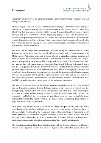 key outcomes, most importantly the clear identification of senior citizens’ primary needs at Al