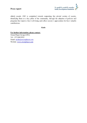 elderly people. FDF is committed towards supporting this pivotal section of society,