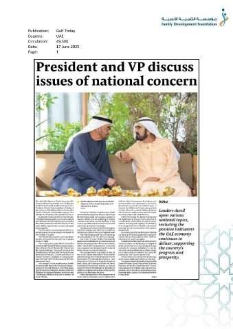 Publication: Gulf Today Country: UAE Circulation: 49,500 Date: 17 June 2025 Page: 1