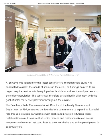 6/10/25, 10:22 AM FDF opens Barakat Al Dar Social Club to empower seniors - Emirati Times