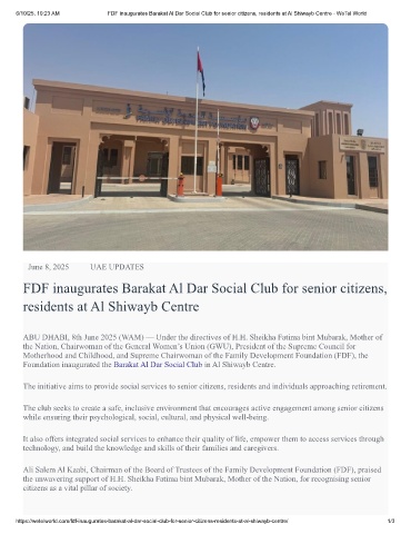 6/10/25, 10:23 AM FDF inaugurates Barakat Al Dar Social Club for senior citizens, residents at Al Shiwayb Centre - WeTel World