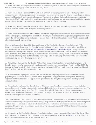 6/10/25, 10:23 AM FDF inaugurates Barakat Al Dar Social Club for senior citizens, residents at Al Shiwayb Centre - WeTel World