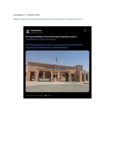 Publication: X – Emirati Times Link: Emirati Times: FDF opens Barakat Al Dar Social Club to empower seniors