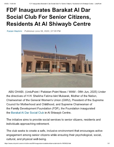 6/9/25, 11:08 AM FDF Inaugurates Barakat Al Dar Social Club For Senior Citizens, Residents At Al Shiwayb Centre - UrduPoint