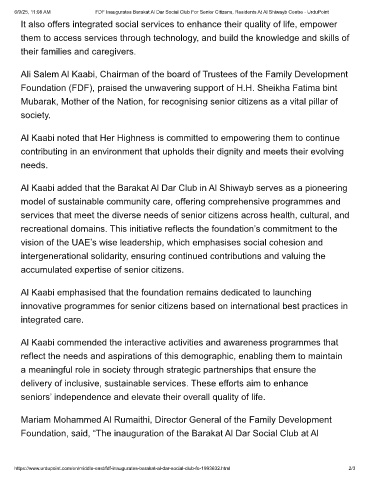 6/9/25, 11:08 AM FDF Inaugurates Barakat Al Dar Social Club For Senior Citizens, Residents At Al Shiwayb Centre - UrduPoint