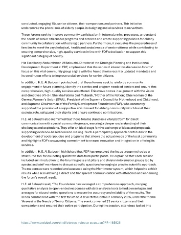 In addition, H.E. Al Baloushi pointed out that these forums seek to reinforce community