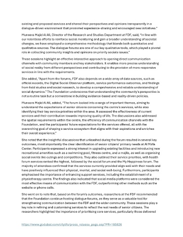 outcomes, most importantly the clear identification of senior citizens' primary needs at Al Mirfa