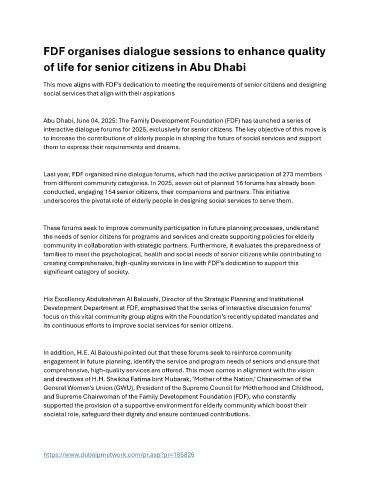 Abu Dhabi, June 04, 2025: The Family Development Foundation (FDF) has launched a series of