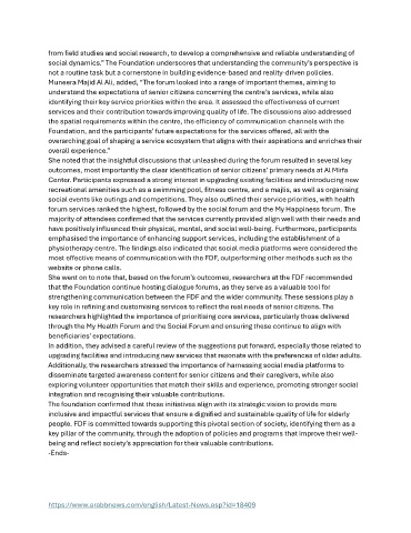 outcomes, most importantly the clear identification of senior citizens’ primary needs at Al Mirfa