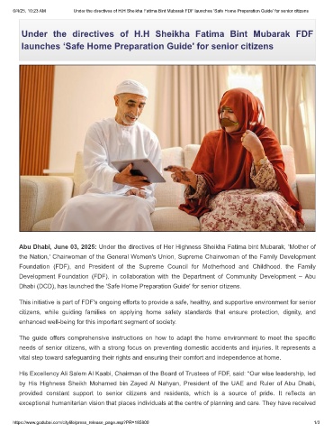 6/4/25, 10:23 AM Under the directives of H.H Sheikha Fatima Bint Mubarak FDF launches ‘Safe Home Preparation Guide' for senior citizens