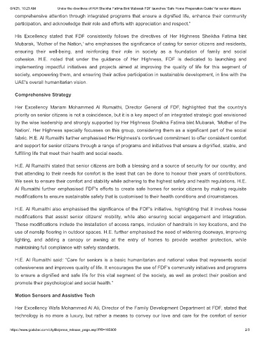 6/4/25, 10:23 AM Under the directives of H.H Sheikha Fatima Bint Mubarak FDF launches ‘Safe Home Preparation Guide' for senior citizens